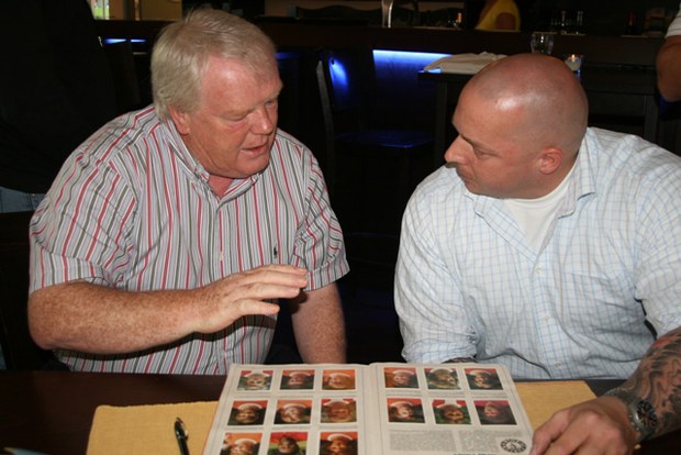 Das Urteil derjenigen, die ihn in den siebziger Jahren noch für die Fortuna live haben spielen sehen, fällt eindeutig aus: "Das war eine Kampfsau!". Für einen defensiven Mittelfeldspieler ist das fast die höchste Auszeichnung, die man sich verdienen kann. Noel Campbell, irischer Nationalspieler und bei der Fortuna von 1971 bis 1978 in 138 Spielen am Ball, traf gestern im Café Carré 40 Fortuna-Fans, die ihn mit Applaus begrüßten. Die Fortuna-Fans waren es auch, die über einige Umwege, den Kontakt zu dem 61jährigen hergestellt hatten, der in Dublin lebt. Schnell war man sich einig: Der 61jährige sollte sehen, was aus seiner Fortuna und natürlich der Fortuna-Familie geworden war. Geld wurde gesammelt und Flugpläne studiert. Gestern abend traf er dann einige wieder, die ihm schon vor mehr als 30 Jahren von der Tribüne der Radrennbahn zugejubelt hatten - für beide Seiten ein tolles Wiedersehen mit vielen emotionalen Momenten und natürlich dem ein oder anderen gemeinsamen Bier.