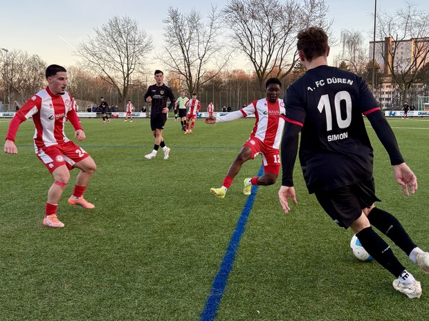 Die U23 hat auch zum Ende der Hinrunde ihre Heimschwäche nicht ablegen können. Im siebten Heimspiel gab es eine 0:2-Niederlage gegen den 1. FC Düren. Nur sechs Punkte stehen zu Hause zu Buche. Die Mannschaft von Trainer Iraklis Metaxas überwintert dennoch in der Mittelrheinliga auf einem guten siebten Platz.