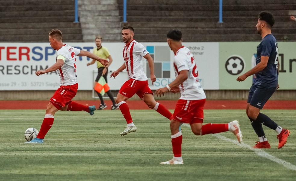 Über den eingewechselten Leon Demaj kam es in der 50. Minute zur nächsten Chance der Gäste. Über den linken Flügel spielte Demaj den Ball auf Harnafi, welcher in letzter Instanz vom gegnerischen Innenverteidiger gestört wurde und so nur eine Ecke herausholte. Nach 59 Minuten setzte Harnafi Owusu per Heber in Szene, der freistehend vor dem Gästekeeper quer auf Leon Demaj legte. Kurz darauf war es Harnafi selbst der den Ball nach Vorarbeit von Owusu im langen Eck zum nächsten Treffer unterbrachte (62.Min). Nur wenige Minuten später erzielten die Südstädter den fünften Treffer des Tages. Brandenburger setzte zu einem Sprint an und drang in den Sechzehner ein, wo er uneigennützig quer auf Harnafi ablegte, der somit seinen Doppelpack schnürte (66.Min). Fortan legte die Fortuna einen Gang zurück und spielte sich nicht mehr zwingend vor das gegnerische Tor. Dies hatte zur Folge, dass in der 80. Minute der Gastgeber seinen Ehrentreffer erzielte. Fortuna Keeper Felix Buer konnte nach einem verdeckten Schuss des Siegburgers Jo, nur noch hinterherschauen (80.Min). Kurz vor Schluss musste der stark aufspielende Ismail Harnafi nach einem Schlag auf den Oberschenkel den Platz verlassen. Kurz danach beendete Schiedsrichter Damar die Partie und das Spiel endete mit 1:5.
