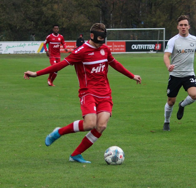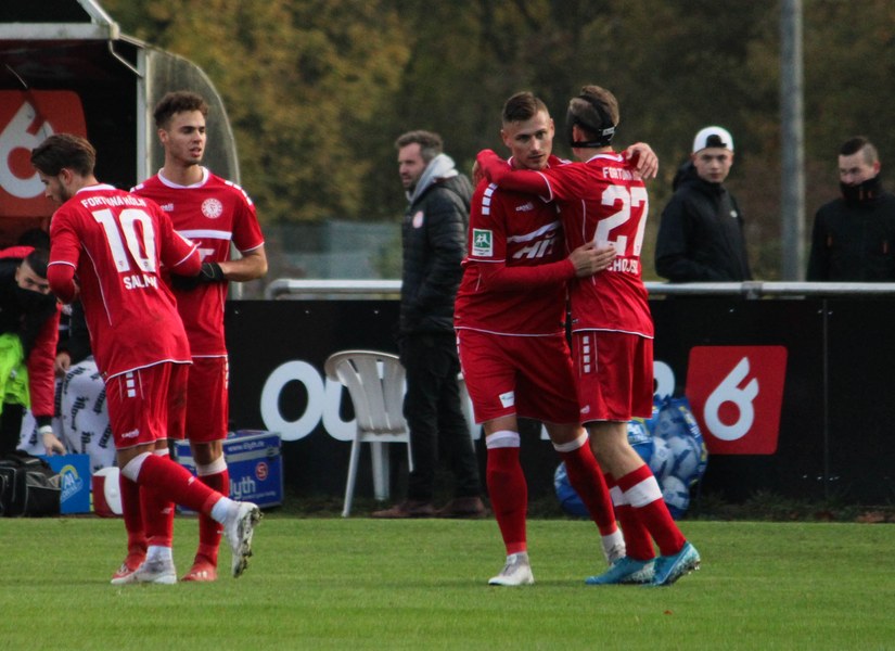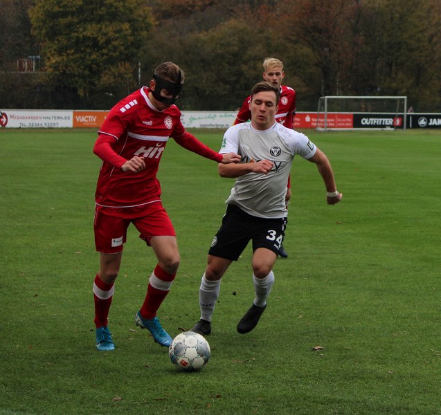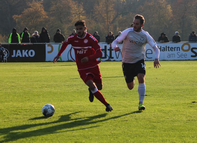 Gegen Haltern war die Geduld der Fortuna gefragt. Haltern ließ Fortuna kommen und lauerte auf die Umschaltmomente. Die Südstädter versuchten es meist über die aktive rechte Seite. Nico Ochojski suchte mit seinen Flanken die Mitspieler, fand jedoch meisten Haltern-Keeper Rafael Hester (8./11.). So sorgte ein Freistoß für das erste große Raunen in der Stausee-Kampfbahn. Franko Uzelac trat zum Freistoß an und zog ihn in gewohnter Manier direkt auf das Tor. Nur Zentimeter setzte er zu hoch an und jagte den Ball über die Latte (16.). Haltern kam ein bisschen besser in das Spiel und tauchte erstmals gefährlich vor dem Tor von Rauhut auf. Arda Nebi rückte über die rechte Seite vor und setzte zum Schluss an. Dieser prallte von Uzelacs rücken erneut vor die Füße von Nebi, der den zweiten Versuch nur knapp über die Latte setzte (22.). Fortuna blieb geduldig und nutzte den nächsten Freistoß für die Führung. Jannes Hoffmann zog den Ball direkt auf das Tor. Hester streckte sich und klärte den Ball kurz vor der Latte – allerdings vor die Füße von Uzelac, der den Ball über die Linie drückte (31.). Nur drei Minuten später tauchte Prokoph vor dem Kasten von Haltern auf, legte den Ball im Fallen allerdings daneben. Kurz vor dem Pausenpfiff hieß es dann noch einmal durchatmen für Fortuna. Haltern zimmerte den Ball an die Latte. Von dort aus landete das Spielgerät vor der Linie und die Südstädter beförderten den Ball aus der Gefahrenzone (45.). Es war die letzte Aktion vor dem Pausenpfiff.