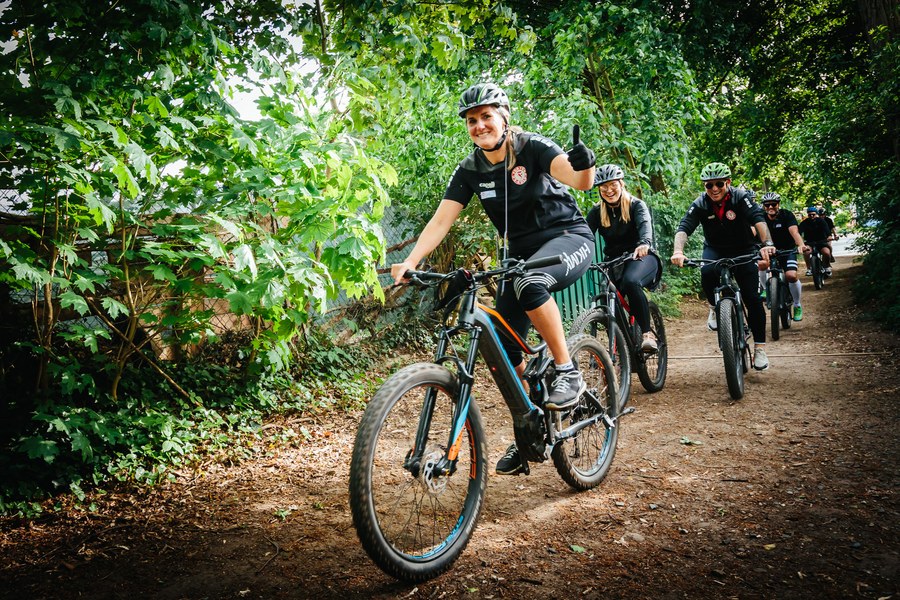 Am Donnerstag, den 12. Mai, lud der treue Fortuna-Partner, das Zweirad-Center Prumbaum, zusammen mit der eurorad Deutschland GmbH in Dellbrück erneut zum alljährigen E-Bike Event ein. Das Radsportvergnügen wurde auch dieses Jahr tatkräftig von zwei Spielern unserer Fortuna unterstützt: Andre Weis und Timo Hölscher, sowie der neue Teammanager Simon Gasper und Co-Trainer Zlatko Muhovic schlossen sich bei sommerlichen Temperaturen an.