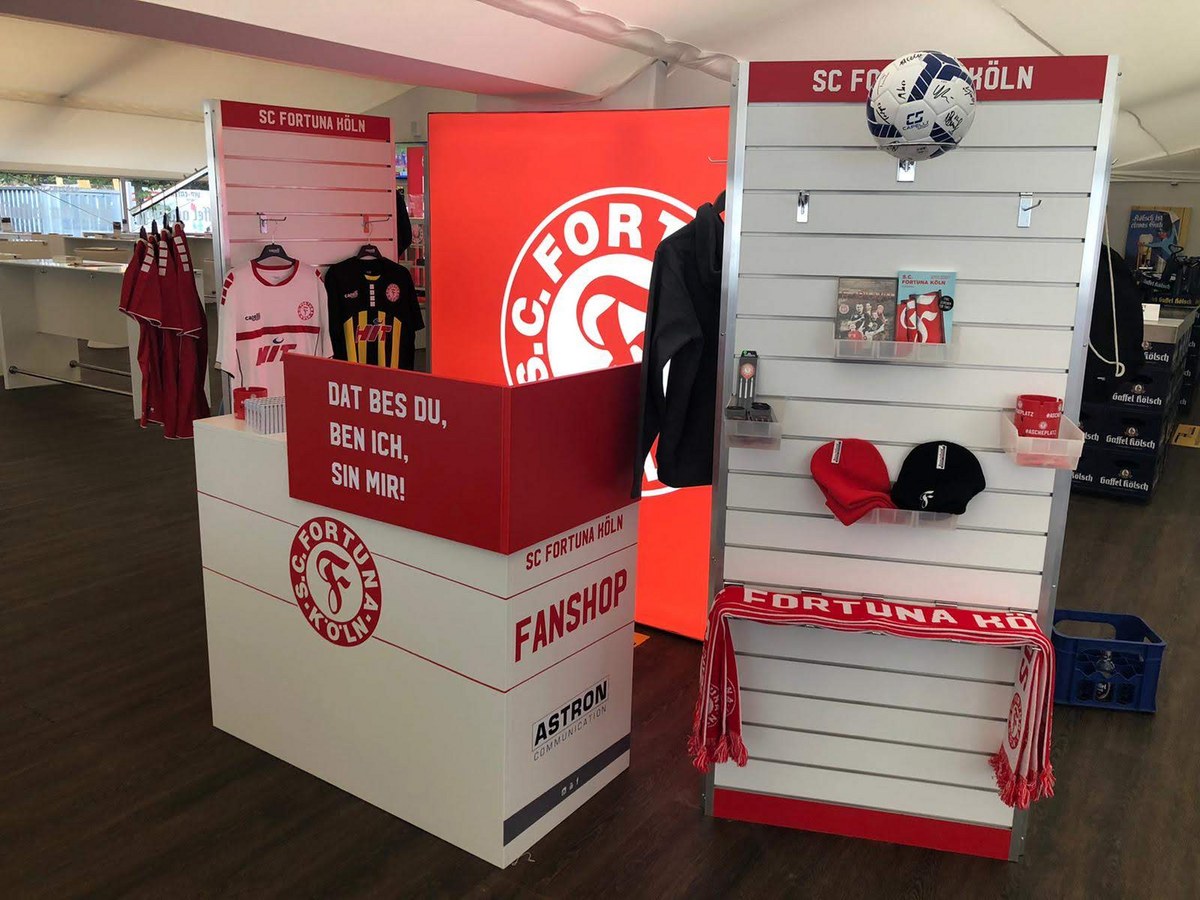 Neben dem Online Shop wird Astron Communications auch einen stationären Stand im VIP Bereich betreuen. In Unterstützung mit Genial5, die einen Fortuna-Stand errichtet haben, wird der Shop nun bei jedem Heimspiel im VIP-Bereich zu finden sein.