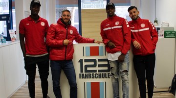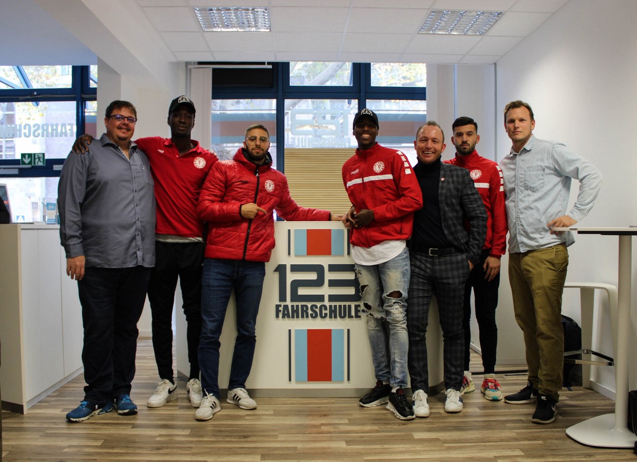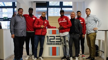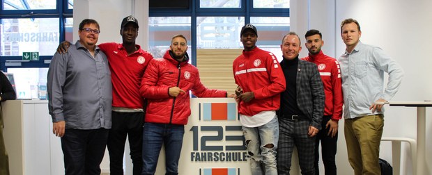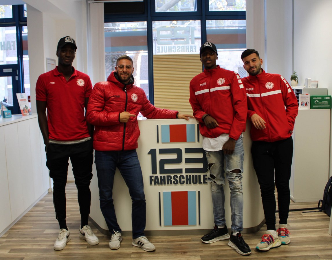 Fortuna Köln freut sich über ein weiteres Mitglied des Fortuna-Netzwerkes. Künftig gehört die 123Fahrschule zu den Partnern der Südstädter. Zu Beginn der Partnerschaft besuchten Benjamin Bruns, Geschäftsführer der Fortuna, sowie die Spieler Dennis Brock, Mike Owusu, Kelvin Lunga und Semih Güler die Fahrschule. Alle vier Spieler werden dort Ihren Führerschein machen.