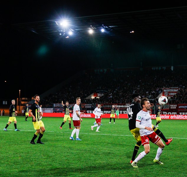 Am heutigen Freitag ging es für unsere Fortuna unter dem Flutlicht der Hafenstraße gegen Rot-Weiss Essen. Im Vergleich zum Sieg gegen Bergisch Gladbach veränderte Thomas Stratos sein Team auf zwei Positionen: Dennis Brock und Kai Försterling kamen für Lars Bender und den angeschlagenen Nico Ochojski, der nicht mit nach Essen reiste.