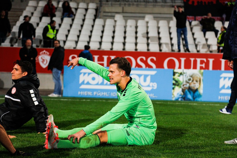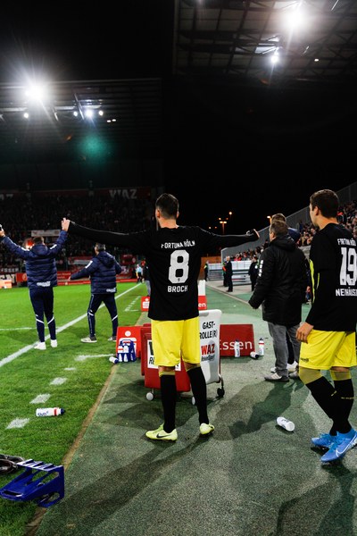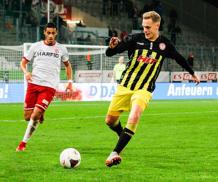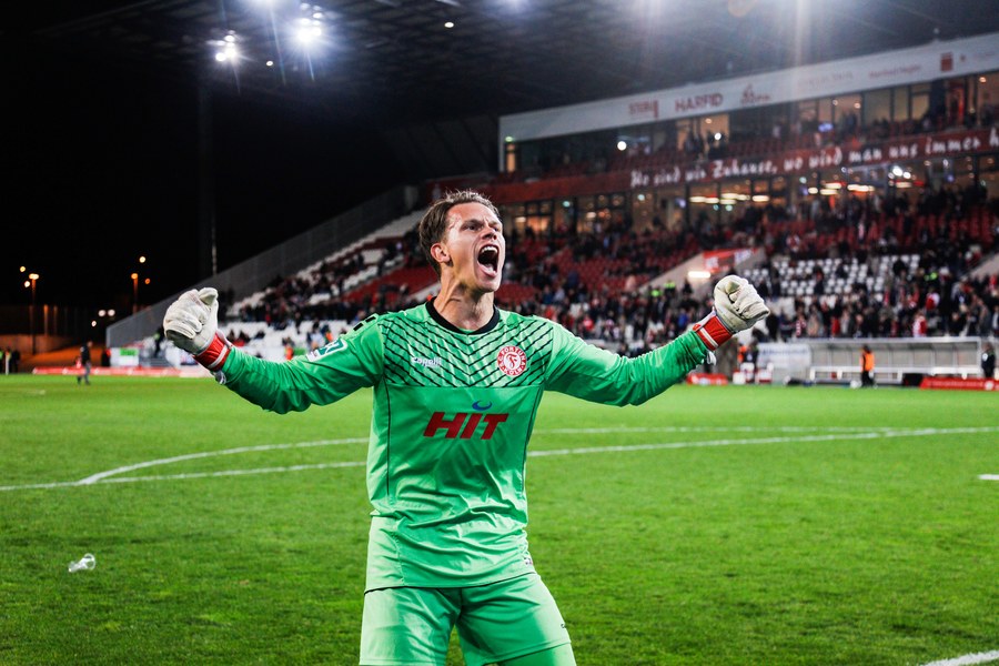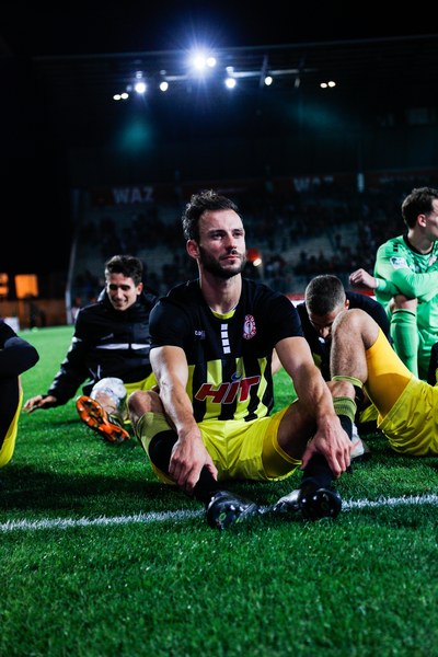 Die zweite Halbzeit startete mit einer bitteren Nachricht für Fortuna. Kai Försterling musste nach einem Zweikampf verletzt vom Platz. Für ihn kam Jannes Hoffmann in die Partie, die zunehmend hitziger wurde. Für das erste Ausrufezeichen des zweiten Durchgangs sorgte Oguzhan Kefkir. Sein Distanzschuss landete aber knapp über dem Kasten von Kevin Rauhut. RWE schnürte Fortuna zunehmend in der eigenen Hälfte ein und drückte auf den Ausgleich. Erst hatte Fortuna Unterstützung durch den Pfosten (72.), dann machte es Tuncer stark gegen den eingewechselten Dahmani, sodass Rauhut den Ball sicher aufnehmen konnte (72.). In der 74. brachte Thomas Stratos mit Ali Ceylan noch einmal eine frische Kraft für die Spitze, um Torwart und Innenverteidiger anzulaufen. Zehn Minuten vor Schluss zeigte Kevin Rauhut sein ganzes Können und sicherte die Führung der Fortuna. Dann machte sich erneut Franko Uzelac bereit. Einen Freistoß aus 30 Metern zog der Kapitän erneut direkt auf das Tor. Marcel Lenz musste sich strecken, um den Ball noch aus dem Eck zu kratzen (81.). Aber auch Rauhut zeigte sein ganzes Können. Kefkir nahm noch einmal Maß und Rauhut hielt seinen Kasten durch eine Flugeinlage sauber (83.). Und das bis zum Abpfiff.