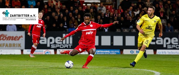Seit dem vergangenen Spiel setzt die Fortuna bei den Spielen der 1. Mannschaft in der Regionalliga West ein sichtbares Zeichen. Erstmals zierte das Logo von Fortunas sozialer Initiative Zartbitter e.V. die Hosen der Spieler.