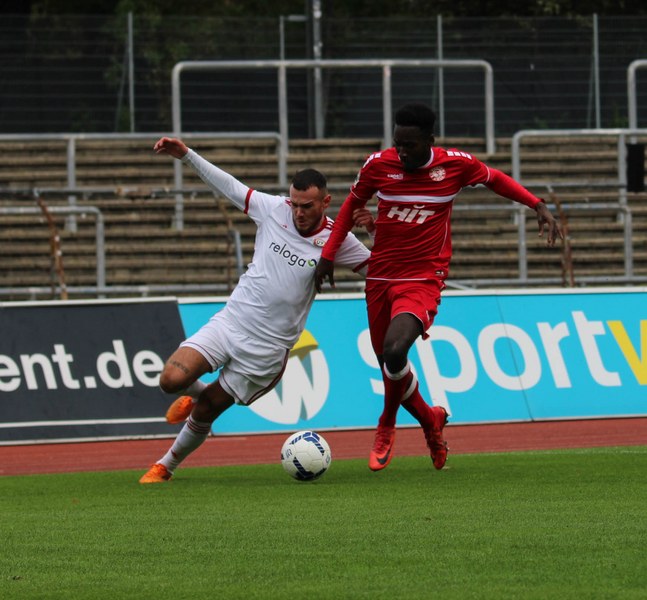 Die Anfangsphase der Partie zeigte, was für ein wichtiges Spiel die Zuschauer im Südstadion heute sahen. Beide Mannschaften waren darauf bedacht, die Defensive abzusichern und über schnelle Konter die Nadelstiche nach vorne zu setzen. Zwingende Aktionen und hundertprozentige Torchancen sprangen dabei jedoch zunächst nicht raus. Schüsse aus der Distanz und Standardsituationen wurden schließlich zum bewährten Mittel. Mamutovic (8.) und Ochojski (12.) zielten aber jeweils zu ungenau und auch Roman Prokoph setzte nach Hereingabe von Salman zu hoch an und beförderte den Ball über das Tor (17.). Dann das erste laute Raunen im Südstadion. Nach einem Einwurf schlug Nico Ochojski eine Flanke vor das Tor von Stümer, Prokoph konnte den Ball aber nicht im Tor unterbringen (28.). Fortuna schien die Anfangsphase, die in den vergangenen Spielen doch immer für Probleme sorgte, gut überstanden zu haben und drückte auf die Führung. Auch Mike Owusu scheiterte jedoch nach schönem Zuspiel von Bender am Keeper (29.). Wenig später war es erneut Owusu, der einen Tick zu spät war und Stümer so vor dem Stürmer am Ball war (36.). Es spielte nur noch die Fortuna. Das Team von Thomas Stratos schaffte es aber nicht, sich mit der Führung zu belohnen. Auch Lars Bender wurde kurz vor dem Strafraum gestoppt (42.). So ging es ohne Tore in die Pause.