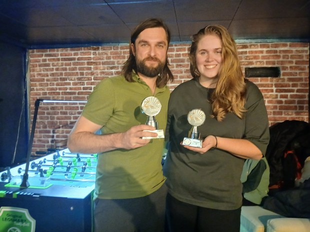 Nach einer gemeinsamen Essenspause, in der sich am reichhaltigen Pizza-Buffet gestärkt wurde, stiegen wir mit 24 Spieler:innen und ab diesem Zeitpunkt mit festen Paarungen in die Finalrunde ein. Nach heiß umkämpften Matches und Dank eines starken Auftritts im Finale gegen Sandra Klintworth und Maximiliano Estudies sicherten sich Lara Fischer und Christian Pavlovic die begehrten Trophäen für die diesjährigen Titelträger:innen. Herzlichen Glückwunsch den beiden!