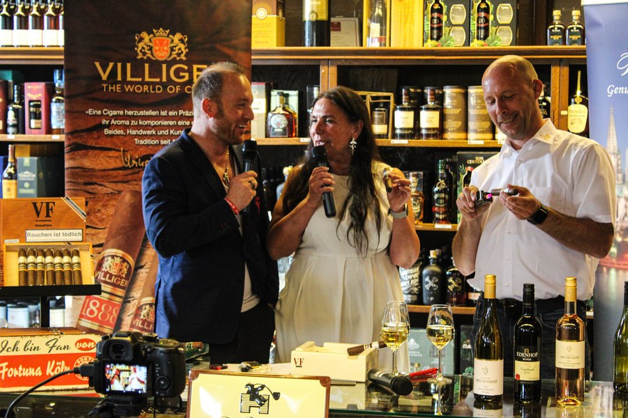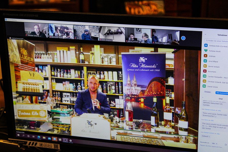 Fortuna Events bei Pfeifen Heinrichs fanden bereits mehrere Male erfolgreich statt und begeisterten die Partner der Fortuna immer wieder aufs Neue. Dieses Mal durften die Teilnehmer leider nicht vor Ort sein, weshalb die ganze Veranstaltung virtuell übertagen wurde. Die Teilnehmer erhielten vorab eine vorgepackte Kiste, in der jeweils zwei verschiedene Zigarren von Pfeifen Heinrichs und vier Weine von Christian Schardt enthalten waren. Leider war es auch nicht möglich an der Mosel bei Christian Schardt vorbeizuschauen, aber eine Fahrt mit den Sponsoren zu ihm steht schon fett im Eventkalender. Bestens ausgestattet traten die Teilnehmer dann per Zoom in den virtuellen Raum ein. Am frühen Abend begrüßte dann Fortuna Geschäftsführer Benjamin Bruns aus den Räumlichkeiten von Pfeifen Heinrichs zusammen mit Inhaberin Petra Heinrichs alle Gäste an den Bildschirmen herzlich. Christian Schardt schaltete sich digital dazu und hieß die Teilnehmer ebenfalls herzlich Willkommen. Im Laufe der Veranstaltung wurden sowohl die Weine als auch die Zigarren präsentiert und kurz vorgestellt. Im Anschluss durften die rund 40 Teilnehmer die beigelegten Köstlichkeiten genießen. Die Genussmittel fanden großen Anklang bei den teilnehmenden Partnern und die Stimmung war fantastisch. Zigarrensommelier Daniel Villiger, der zusammen mit Bruns und Heinrichs durch den Abend führte, gab den Gästen seine Expertise weiter und teilte sein fachkundiges Wissen. Christian Schardt konnte mit seinem Wissen rund um die Weine viele neue Informationen liefern. Neben zahlreichen Informationen bot der Abend den interessierten Gästen auch eine Menge Spaß.