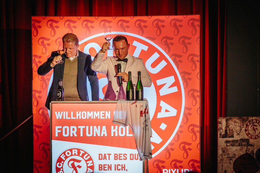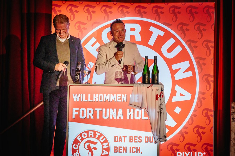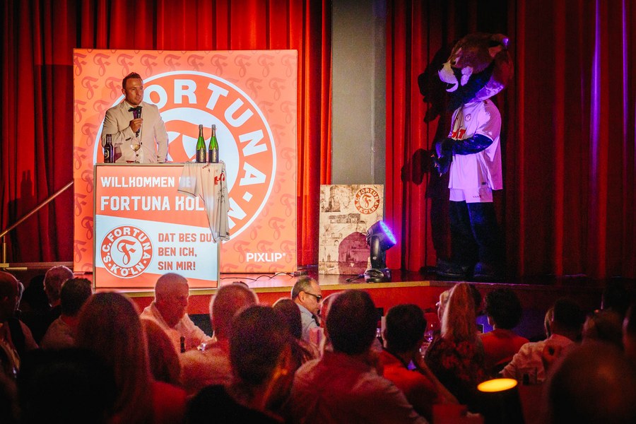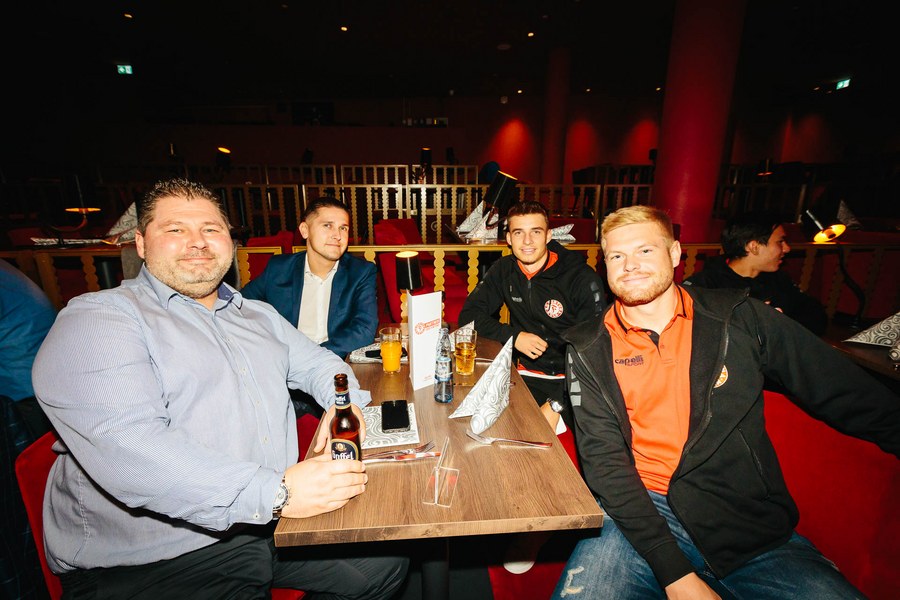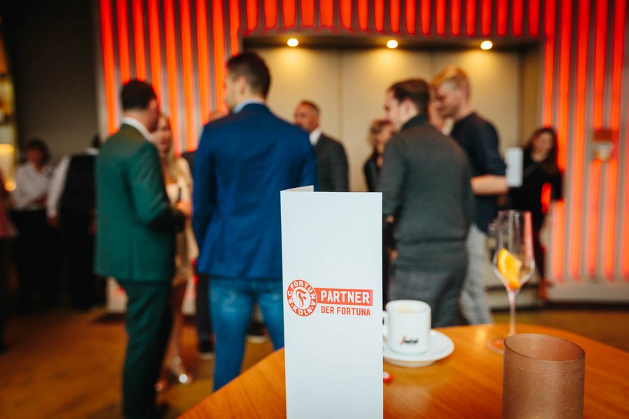 Die Veranstaltung startete um 17:30 Uhr mit einem netten Zusammentreffen der Fortuna-Partner mit Trainerteam und Mannschaft bei leckerem Kölsch von Gaffel und der beliebten Stadionwurst von Remagen im Foyer. Gegen 19 Uhr ging es dann weiter in den Theatersaal. Nachdem alle Gäste ihre Plätze eingenommen hatten, eröffnete Fortuna-Geschäftsführer Benjamin Bruns den Abend offiziell.