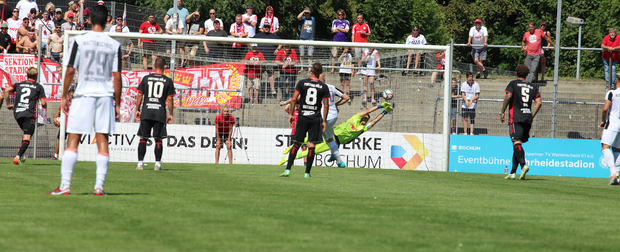 Kurz vor der Pause zeigte der Schiedsrichter auch auf der anderen Seite auf den Punkt, nachdem ein Wattenscheider den Ball an die Hand bekommen hatte. Den fälligen Handelfmeter von Sascha Marquet konnte SG-Schlussmann Bruno Staudt sehenswert parieren (42.). Bei einem Konter kurze Zeit später zeigte Abid Yanik bei seinem Regionalliga-Debüt eine starke Einzelleistung und kam zum 2:0 (45.).