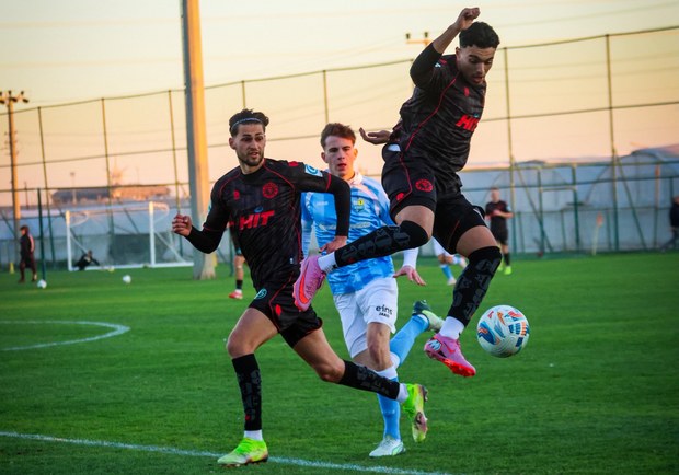 Fortuna begann mit einer ungewohnten Formation. Nach vier Minuten fiel bereits die Führung für die Himmelblauen. Domenico Alberico setzte sich über links durch, spielte flach ins Zentrum, wo Johannes Pistol aus dem Rückraum mit der Innenseite unter die Latte zum 1:0 traf. In der 16. Minute erhöhte der CFC auf 2:0. Nach einer Flanke stand Pistol am langen Pfosten völlig frei, sein Volleyschuss wäre neben dem Tor gelandet, aber Jonas Marx drückte den Ball mit der Brust über die Linie. Nach 31 Minuten spielte Salim Hadouchi einen klugen Pass auf Hamadi Al Ghaddioui, der routiniert und überlegt zum 1:2 in die lange Ecke schoss. Kurz vor der Pause musste sich CFC-Keeper Daniel Adamczyk nach einem Distanzschuss von Kian Hekmat ordentlich strecken.